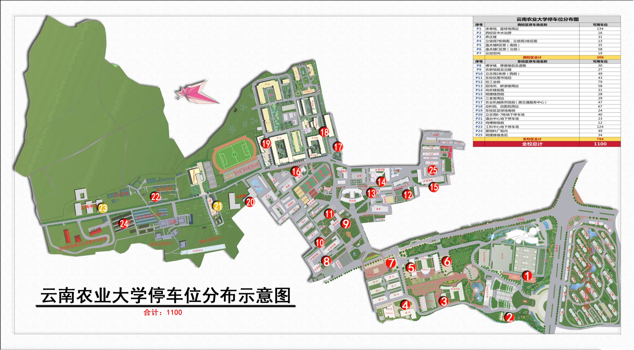 云南農(nóng)業(yè)大學(xué)停車位分布示意圖