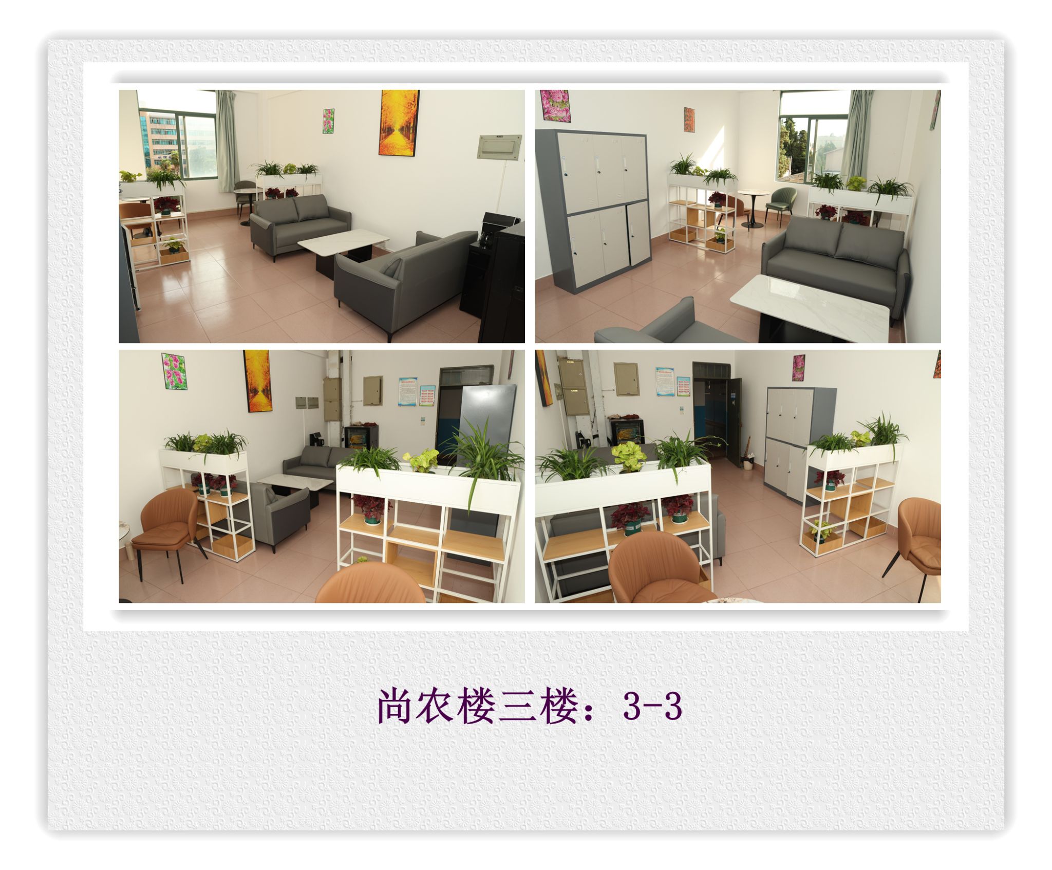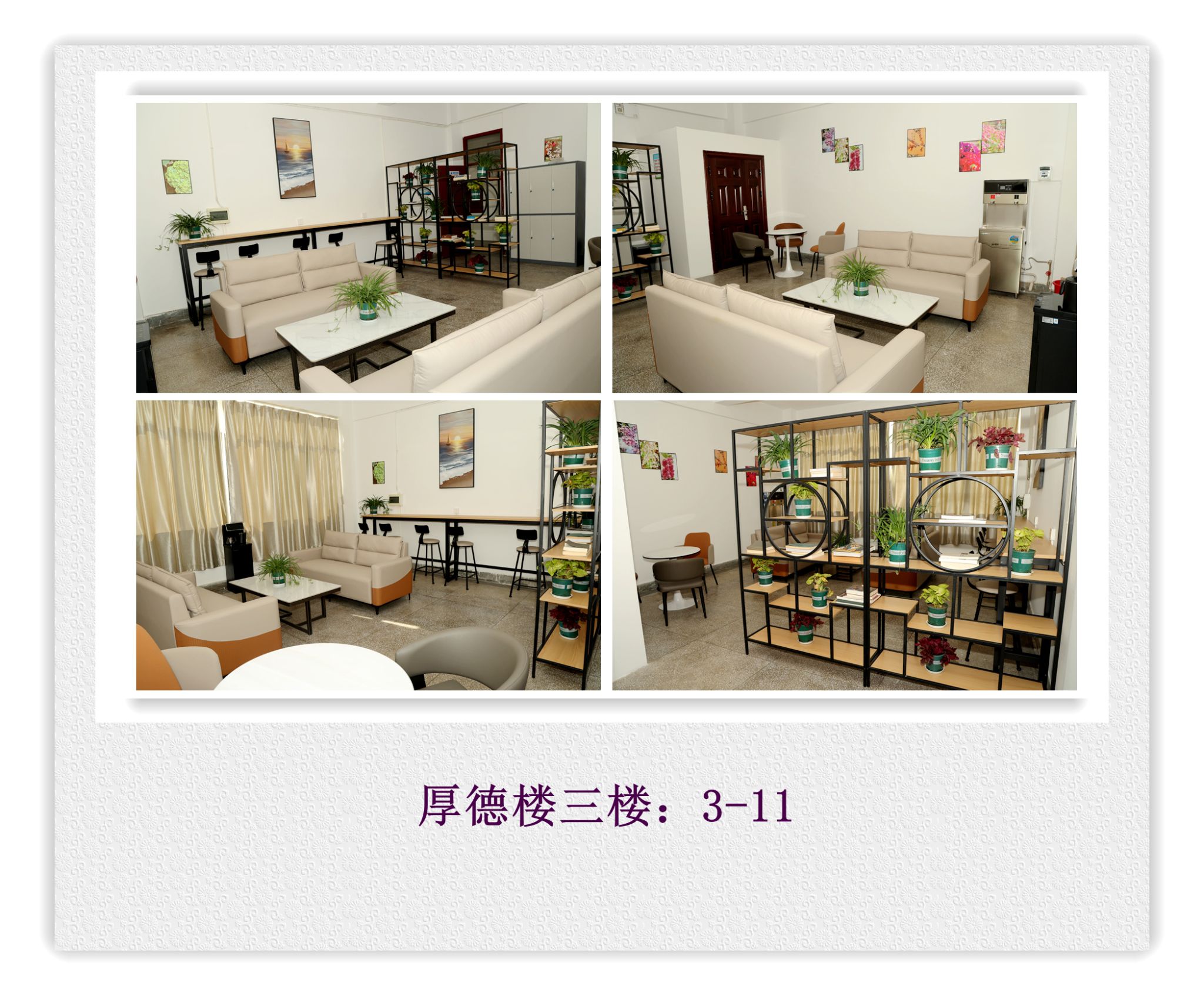 本學期開學前,6間教師休息室的增設和改造升級工作已全部完成,新學期伊始即正常投入使用。休息室配備了茶幾、沙發、卡座、休閑椅、吧臺吧椅、儲物柜、茶吧機和桶裝礦泉水等。為便于管理和環境維護,教師休息室的開放時間與教學樓管理同步,僅供教師課間休息、教學答疑等使用,禁止挪作他用或長期存放個人物品,嚴禁在室內吸煙。確需臨時存放物品,請使用帶鑰匙的儲物柜,用畢將鑰匙歸位。