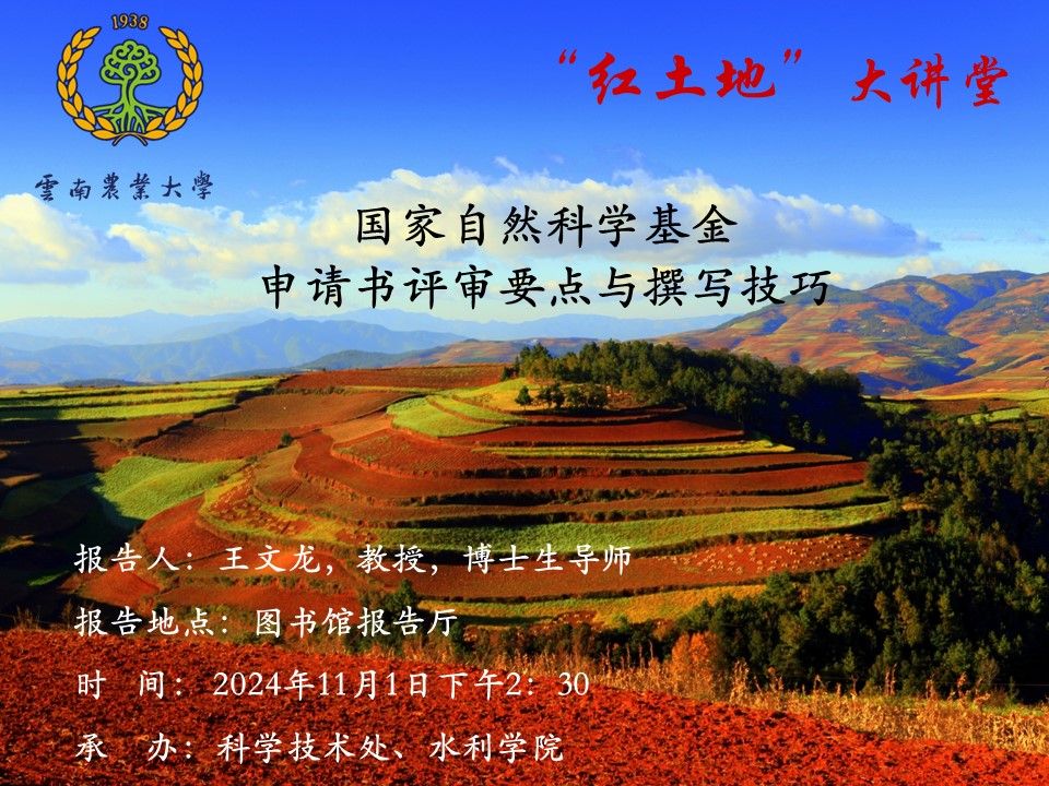 11月1日“紅土地”大講堂:國家自然科學基金申請書評審要點與撰寫技巧