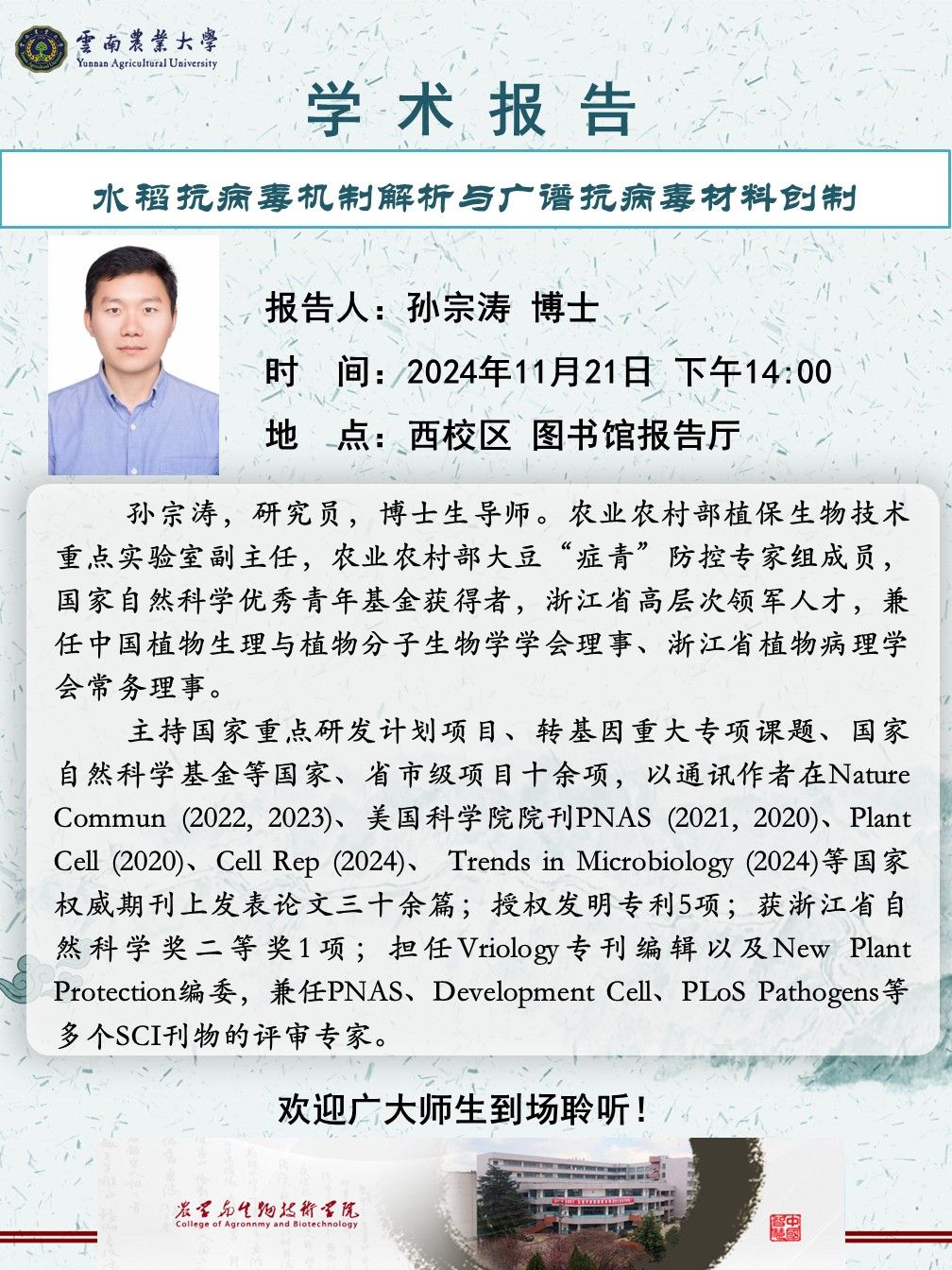 11月21日“紅土地”大講堂:水稻抗病毒機制解析與廣譜抗病毒材料創制