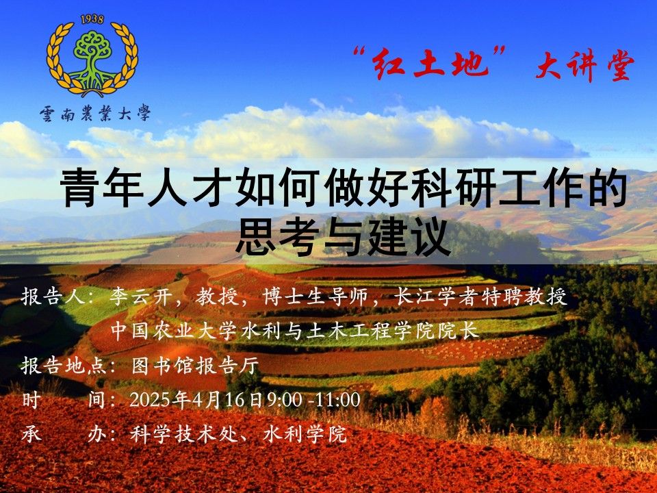 4月16日“紅土地”大講堂:青年人才如何做好科研工作的思考與建議