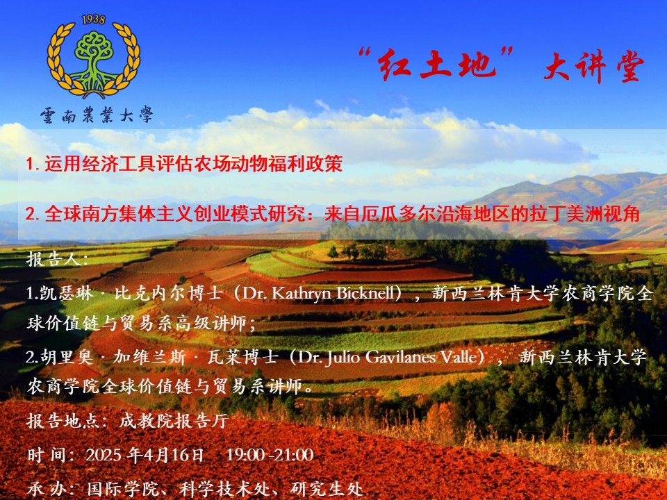 4月16日“紅土地”大講堂:運用經濟工具評估農場動物福利政策&全球南方集體主義創業模式研究來自厄瓜多爾沿海地區的拉丁美洲視角