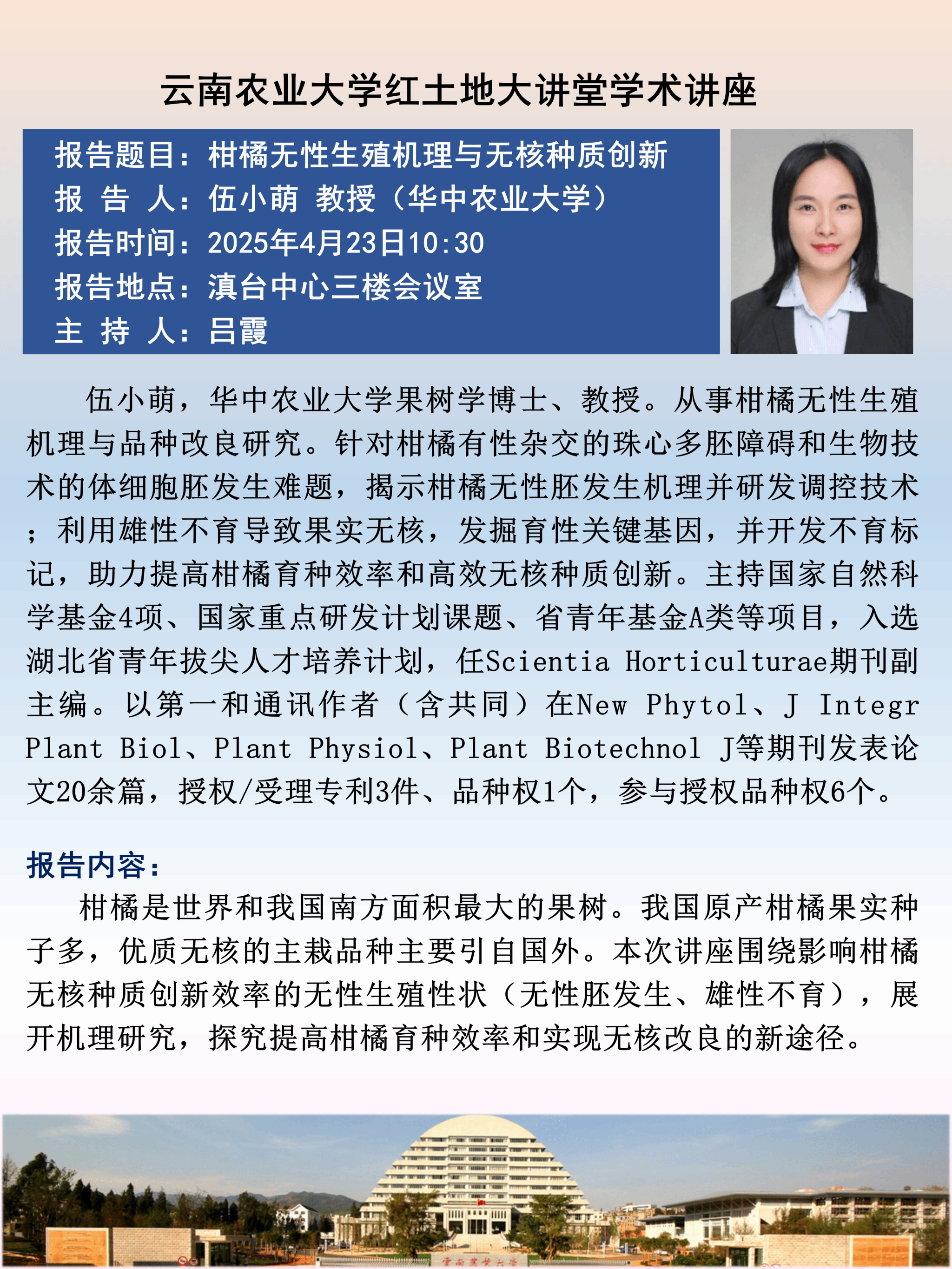 4月23日“紅土地”大講堂:柑橘無性生殖機理與無核種質創新