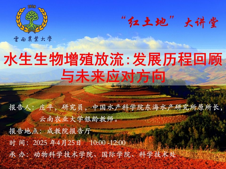 4月25日“紅土地”大講堂:水生生物增殖放流:發展歷程回顧與未來應對方向