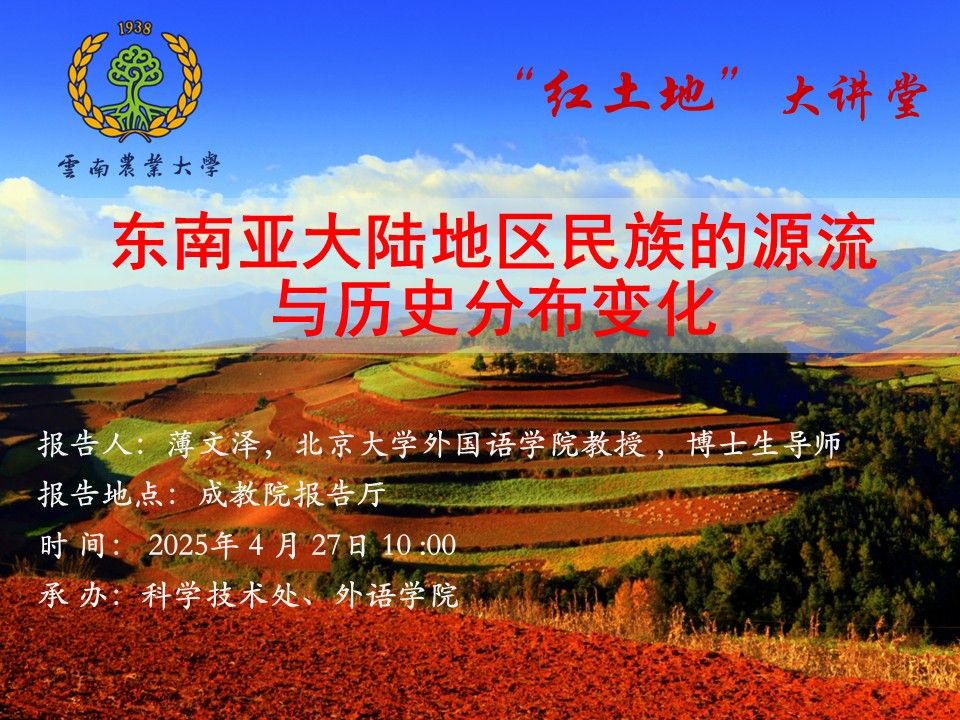 4月27日“紅土地”大講堂:東南亞大陸地區民族的源流與歷史分布變化
