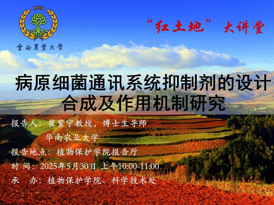 5月30日“紅土地”大講堂:病原細(xì)菌通訊系統(tǒng)抑制劑的設(shè)計(jì)合成及作用機(jī)制研究