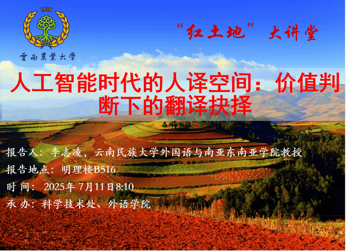 7月11日“紅土地”大講堂:人工智能時(shí)代的人譯空間:價(jià)值判斷下的翻譯抉擇