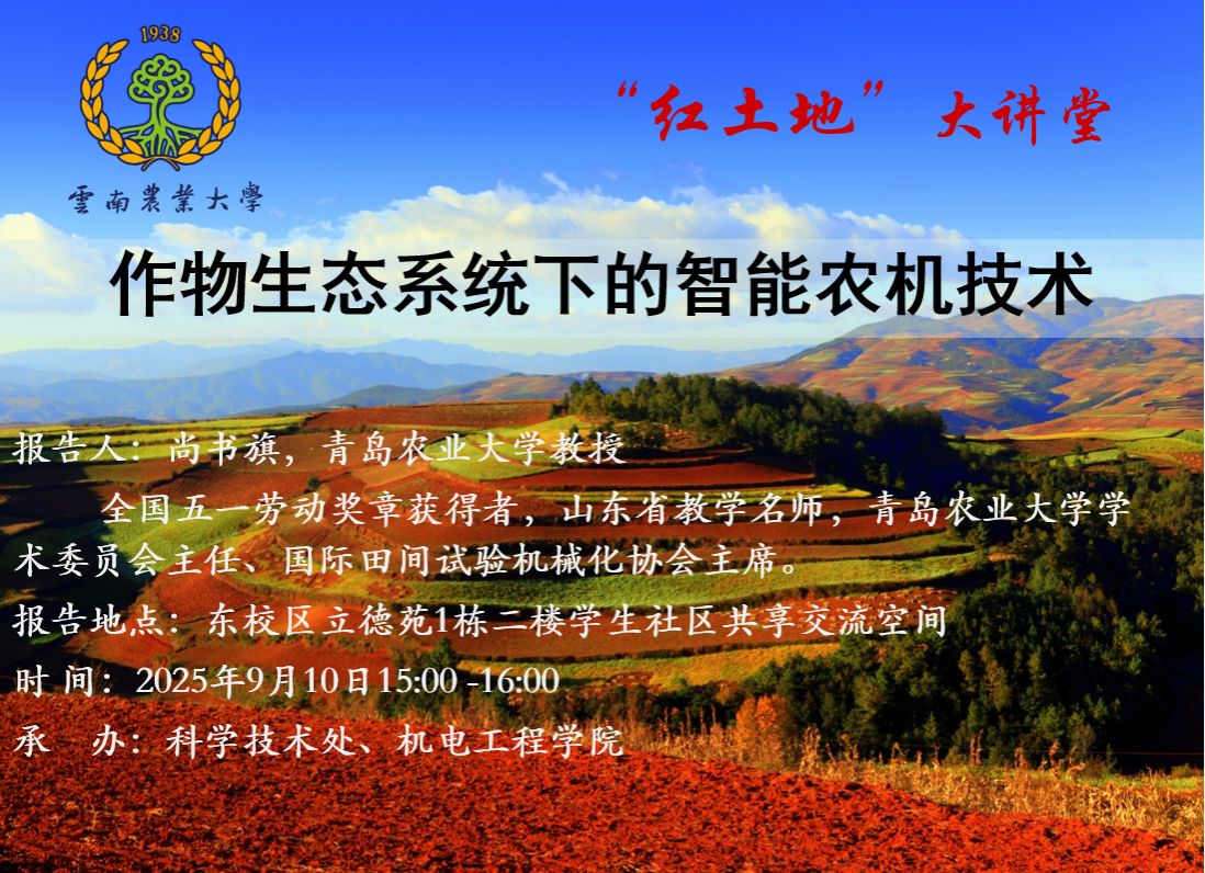 9月10日“紅土地”大講堂:作物生態系統下的智能農機技術