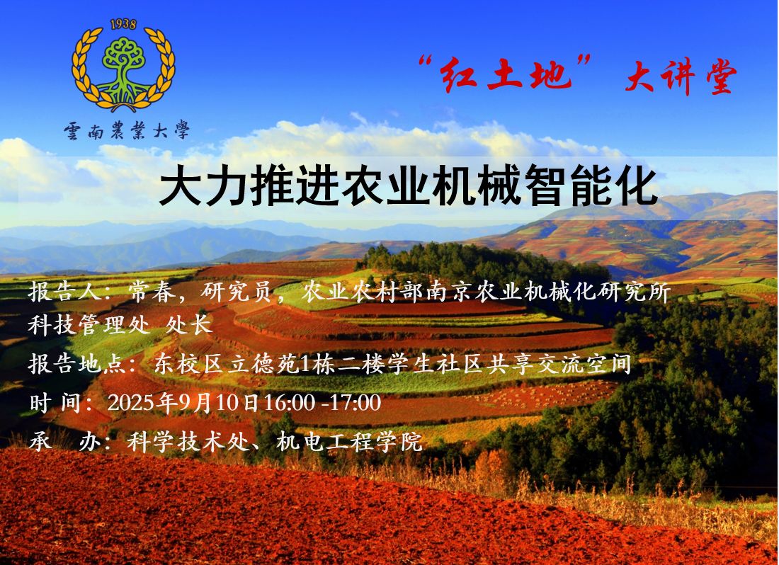 9月10日“紅土地”大講堂:大力推進農業機械智能化