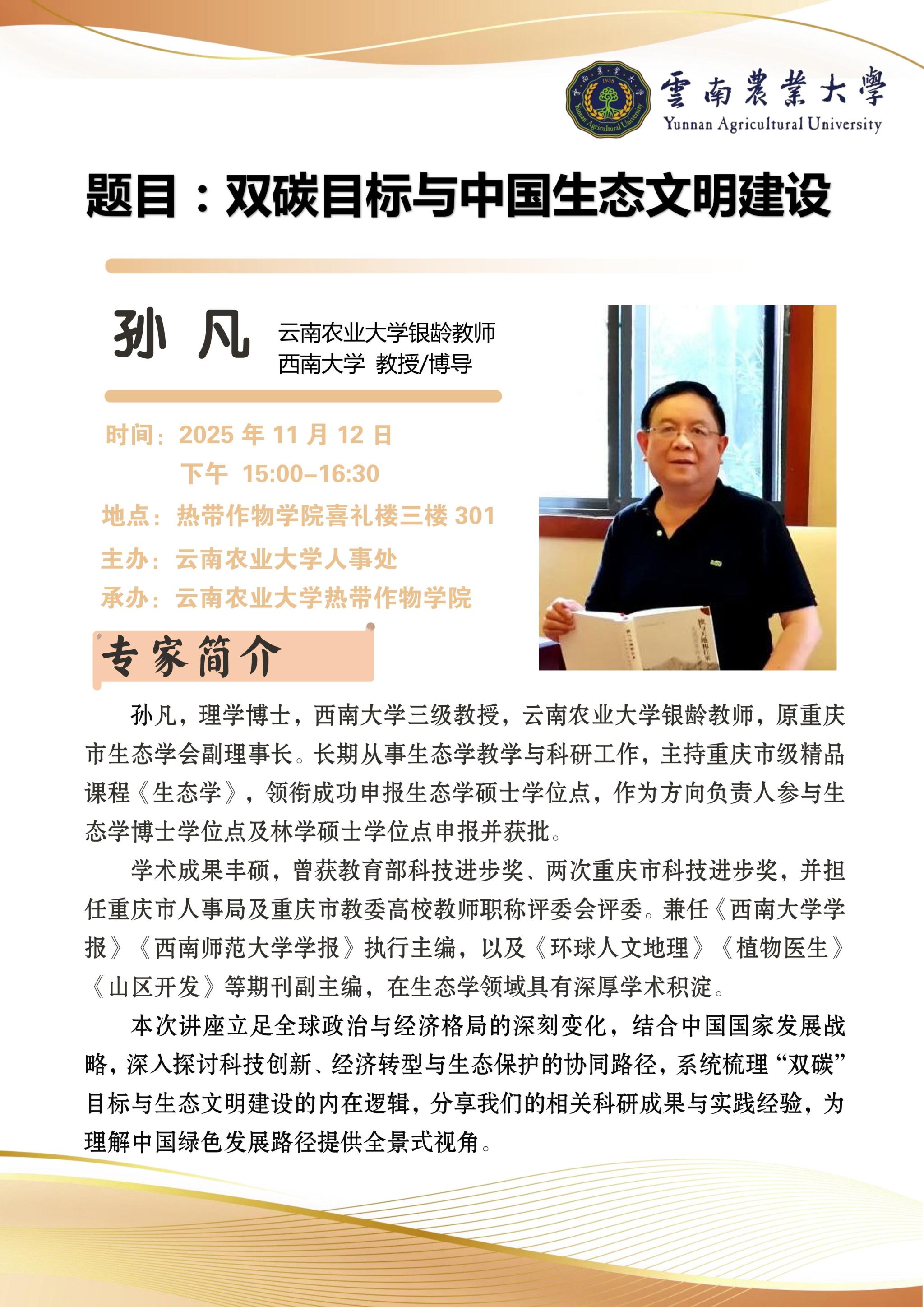 11月12日學術報告:雙碳目標與中國生態文明建設