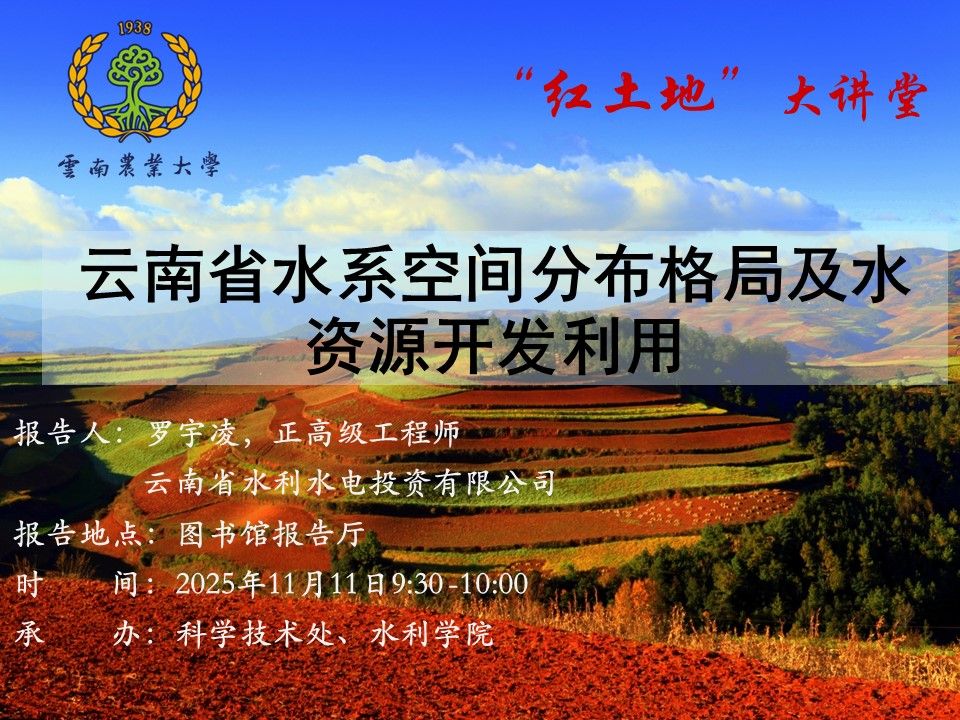 11月11日“紅土地”大講堂:云南省水系空間分布格局及水資源開發(fā)利用