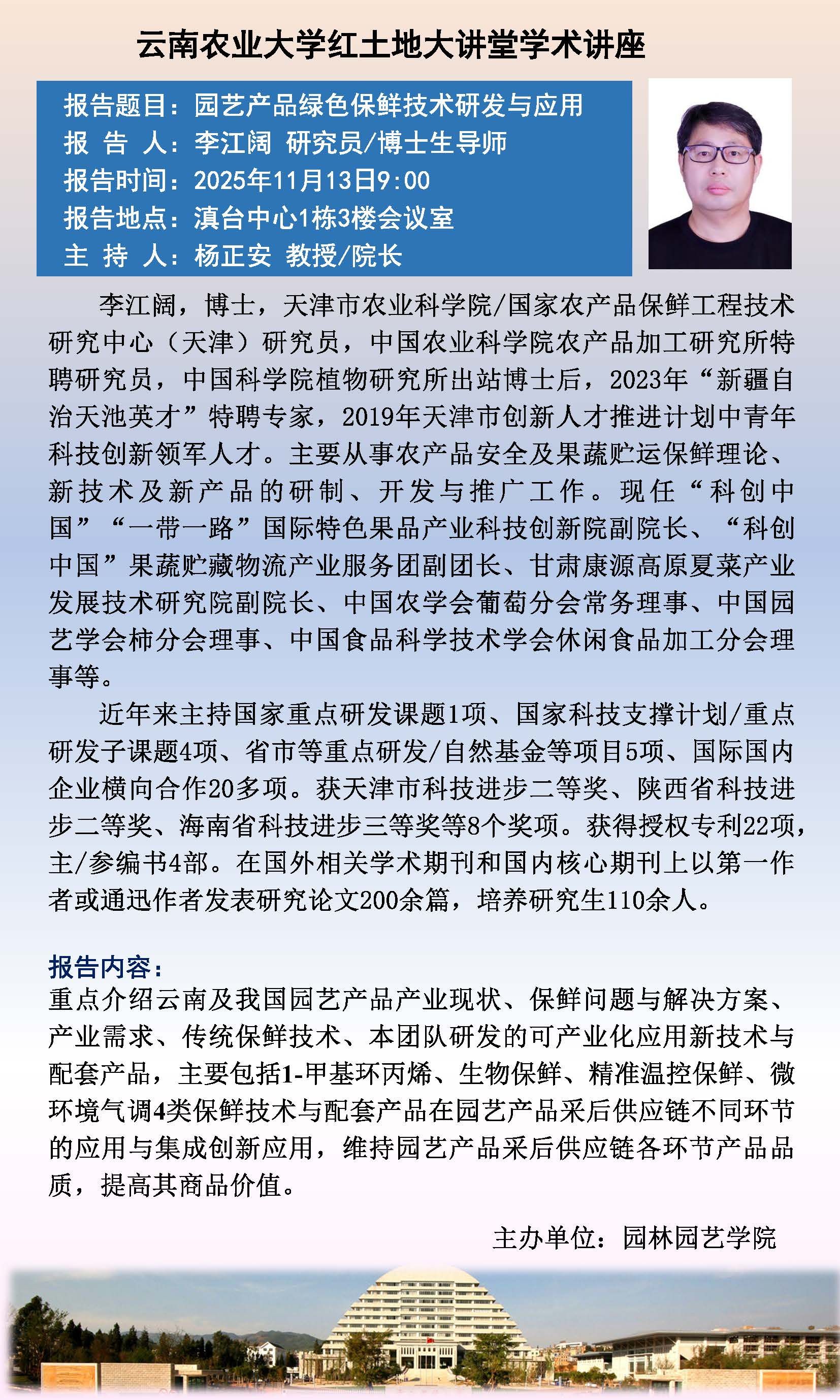 11月13日“紅土地”大講堂:園藝產品綠色保鮮技術研發與應用