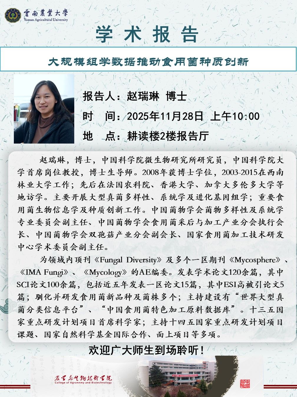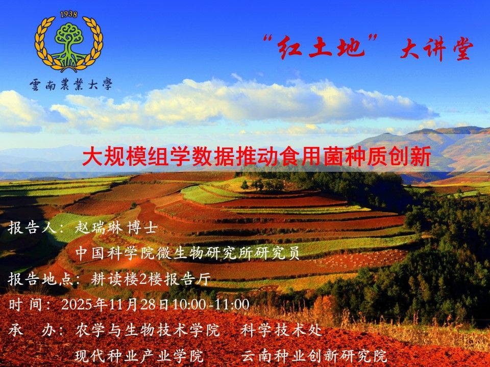 11月28日“紅土地”大講堂:大規模組學數據推動食用菌種質創新
