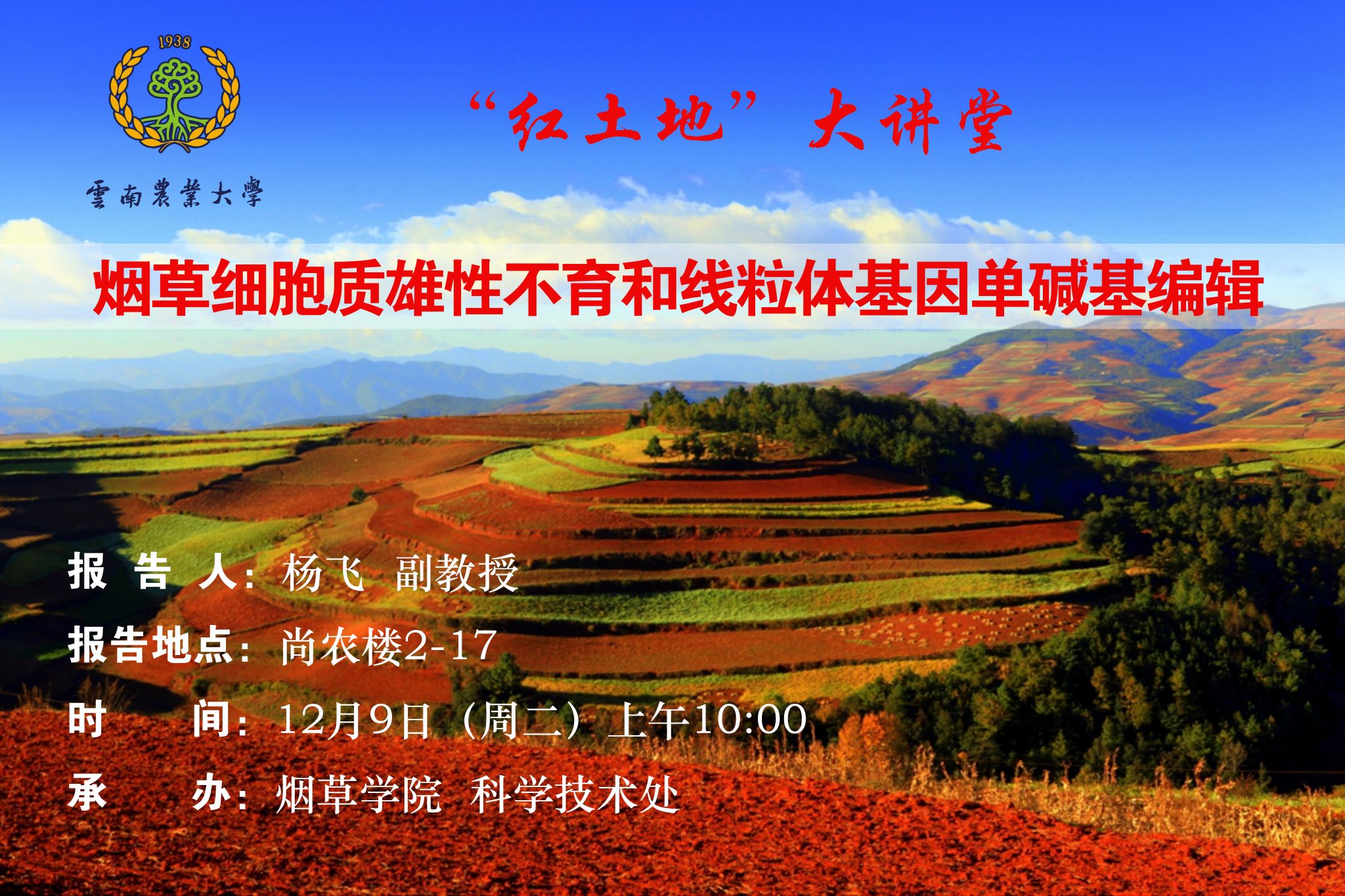 12月9日“紅土地”大講堂:煙草細胞質雄性不育和線粒體基因單堿基編輯