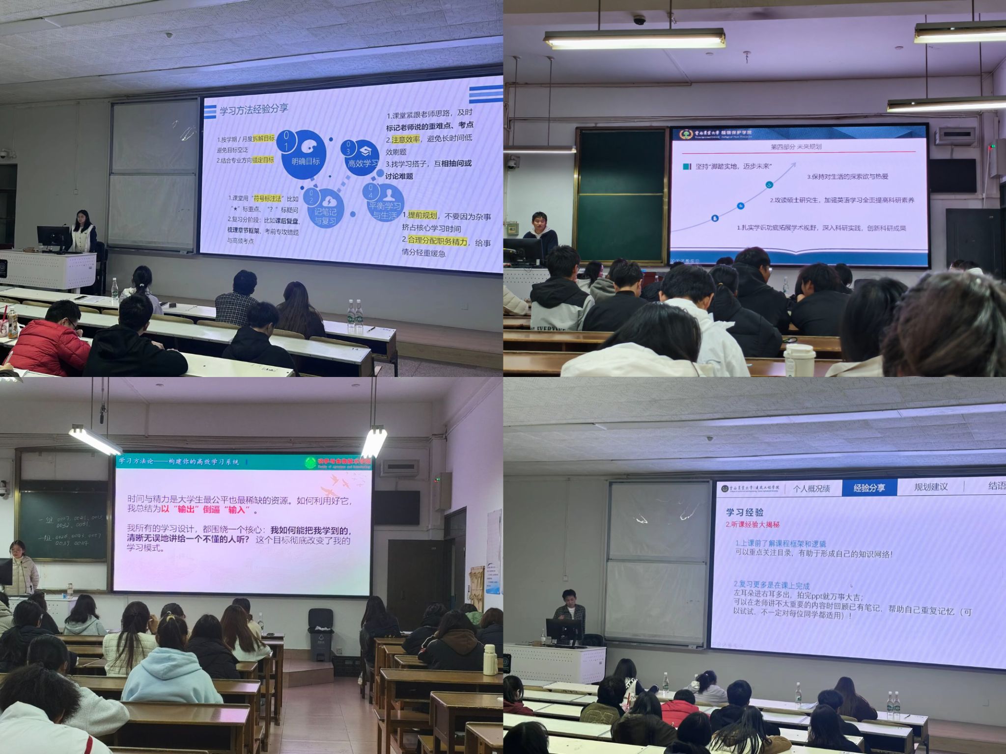 分享會共設17場,覆蓋農學、植物保護、水利、英語等多個專業領域。分享內容涵蓋專業學習、科研競賽、推免升學、實踐能力培養等多個方面。獲獎學子結合自身經歷,傾情講述成長路徑與奮斗心得,為在場同學提供了寶貴借鑒。