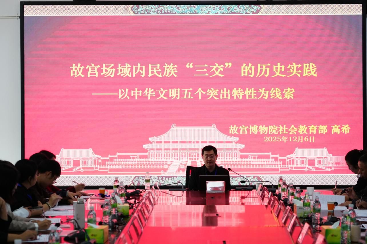 會議邀請故宮博物院副研究員高希博士,以《故宮場域內民族"三交"的歷史實踐——以中華文明五個突出特性為線索》為題,帶來了一場兼具歷史深度與時代價值的精彩分享。他從中華文明的突出特性切入,通過鮮活的歷史案例與詳實的文獻資料,生動闡釋了各民族在長期交往交流交融中形成的命運與共格局,為在場教師開展《中華民族共同體概論》教學提供了豐富的歷史素材與新穎的教學視角。報告引發熱烈反響,大家紛紛表示深受啟發,將把這些寶貴的歷史智慧融入課堂教學,讓鑄牢中華民族共同體意識的種子在學生心中生根發芽。
