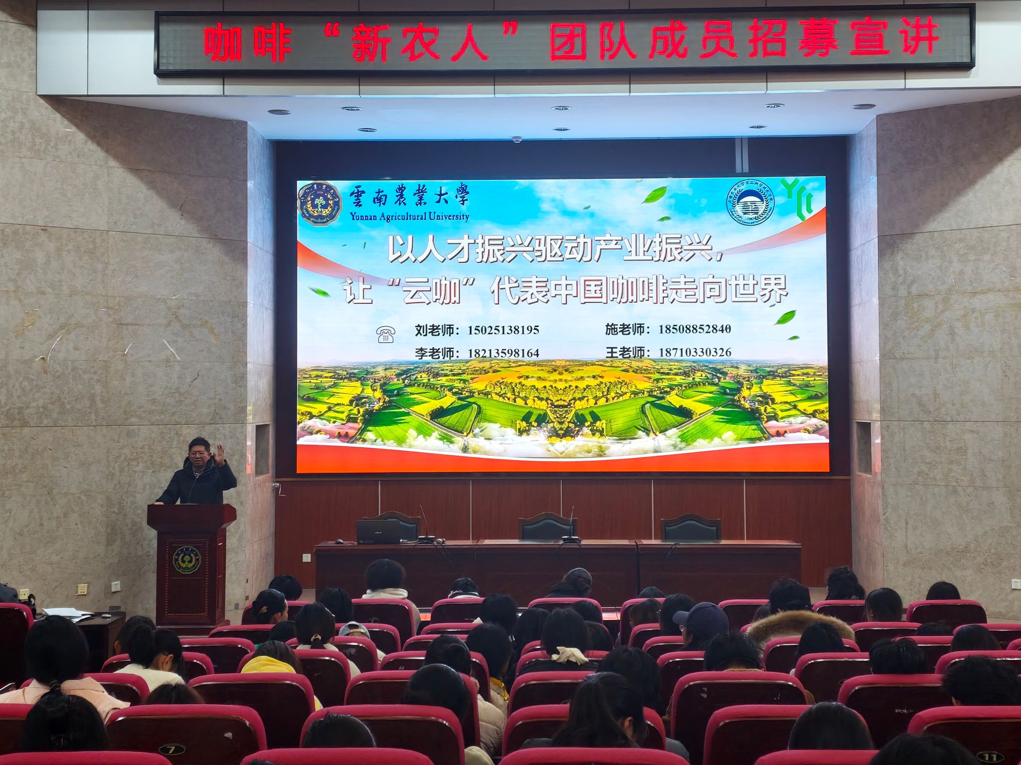 本站消息 為推進《云南農業大學關于加快培育扎根鄉村一線“新農人”工作實施方案》的工作部署,把“云南咖啡還是代表著中國的”落實到教育科技人才一體化建設上,12月4日至12月7日,由副校長、咖啡科學與工程專業負責人李宏帶隊,食品科學技術學院牽頭,聯合熱帶作物學院、云南省咖啡現代產業學院,分別在校本部、普洱校區開展咖啡“新農人”團隊招募宣講、面試活動,全校450余名同學參加了宣講會,參會學生涉及咖啡、食品、林學、經管、大數據等專業。