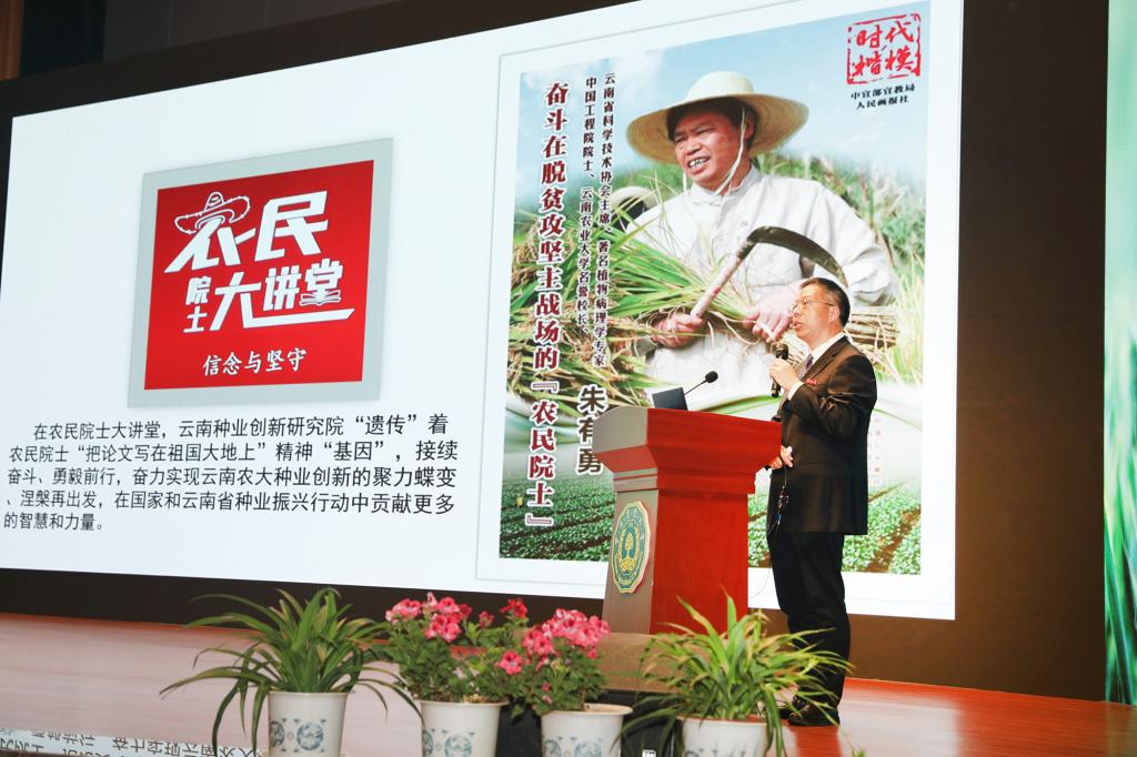 朱有勇介紹了幾十年來學校在種業(yè)創(chuàng)新研究上的艱辛探索和取得的輝煌成績,他表示,有了好的“種子”,更要在“耕種”上下功夫,要探索更加科學高效的種植方式,真正把論文寫在祖國大地上。
